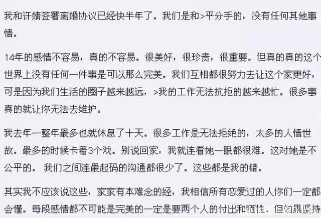 他还把离婚的原因也归结到自己身上。 说是因为他工作太忙了,所以导致两个人离婚了。 而对于张子萱他也是直接承认的。